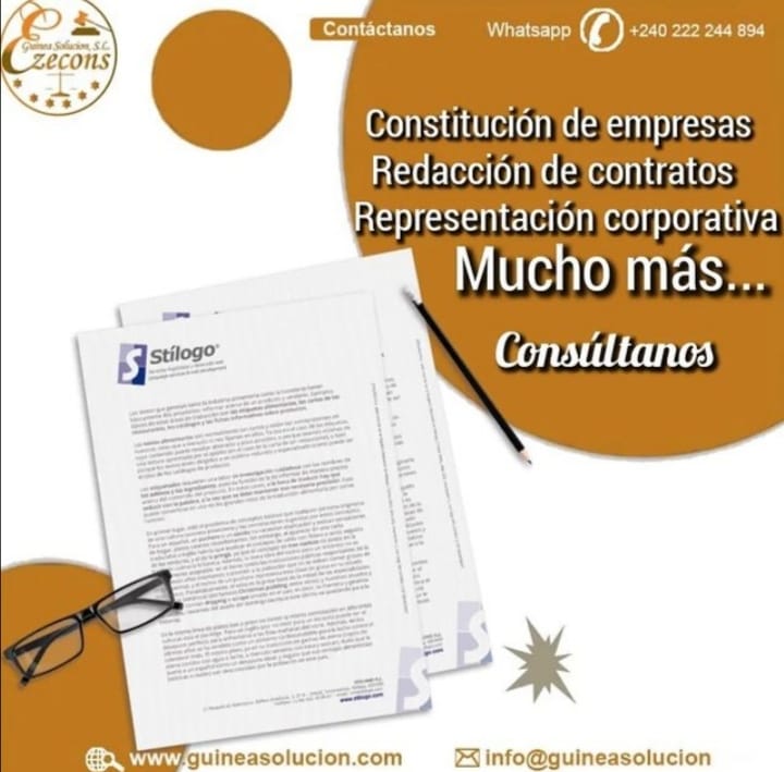 Guinea Solución, S.L. (EZECONS), es un Bufete Jurídico de Negocios y Gestoría Administrativa que se encarga de gestionar los tramites administrativos y resolver conflictos de personas físicas y jurídicas.