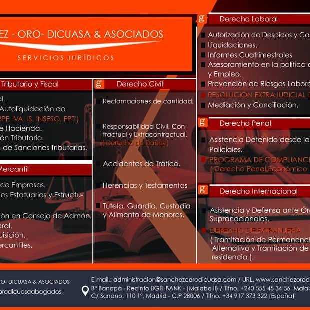 Somos un despacho joven y dinámico, con sede principal en Madrid y Malabo (Guinea Ecuatorial) que nace con el propósito de llegar a ser un despacho de referencia tanto a nivel nacional como internacional, que dispone de profesionales de reconocido prestigio, altamente cualificados y de amplia experiencia.