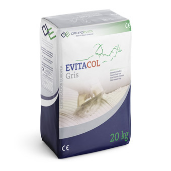 Evitacol Gris se presenta en sacos de papel con lámina de plástico antihumedad de 20 kg expedidos sobre palets retractilados de 1.280 kg (64 sacos).